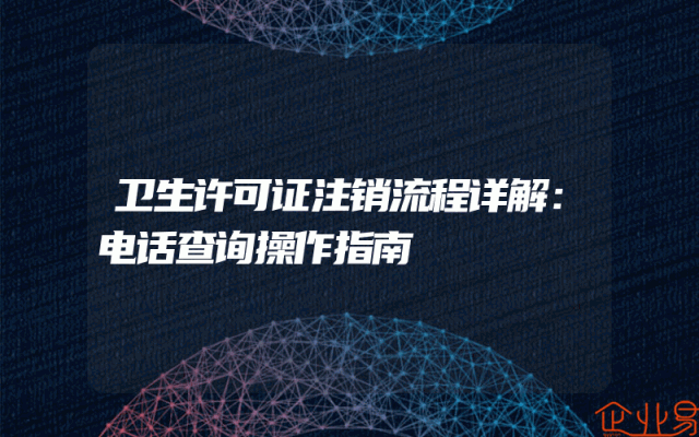 - 卫生许可证注销流程详解:电话查询操作指南一、前言卫生许可证是开展各类公共场所经营活动所必需的法定证件之一。在某些情况下,企业可能因为各种原因需要注销卫生许可证。本文将详细介绍卫生许可证注销流程,并特别关注电话查询操作指南,以便更好地为广大企