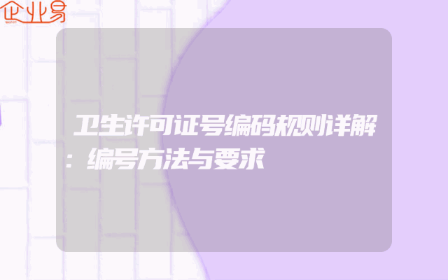 - 卫生许可证号编码规则详解:编号方法与要求在现代社会,企业面临的监管日益严格,卫生许可证作为企业合法经营的必备证照之一,其编码规则的重要性不言而喻。本文将详细解读卫生许可证号的编码规则,从编号方法到具