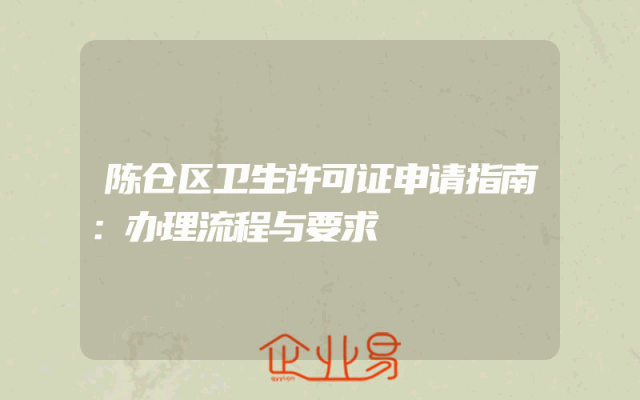 - 陈仓区卫生许可证申请指南:办理流程与要求