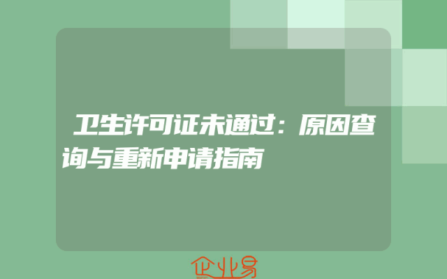 - 卫生许可证未通过:原因查询与重新申请指南