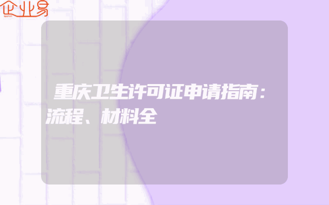 - 重庆卫生许可证申请指南:流程、材料全