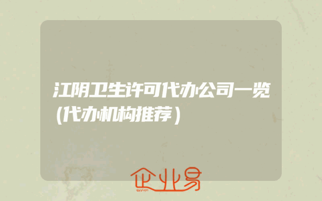 - 江阴卫生许可代办公司一览(代办机构推荐)