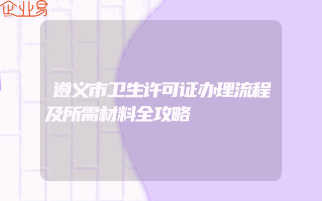 - 遵义市卫生许可证办理流程及所需材料全攻略