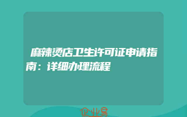 - 麻辣烫店卫生许可证申请指南:详细办理流程
