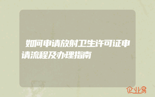 - 如何申请放射卫生许可证申请流程及办理指南