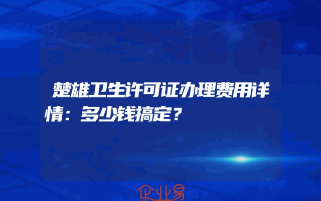 - 楚雄卫生许可证办理费用详情:多少钱搞定?