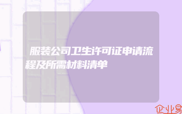 - 服装公司卫生许可证申请流程及所需材料清单一、前言随着消费者权益保护意识的加强,服装公司的卫生安全已成为监管部门重点关注的领域。为了确保公司业务的正常运营,申请卫生许可证是服装公司的必经之路。本文将详细介绍服装公司卫生许可证的申请流程及所需材