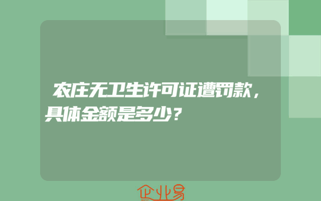 - 农庄无卫生许可证遭罚款,具体金额是多少?