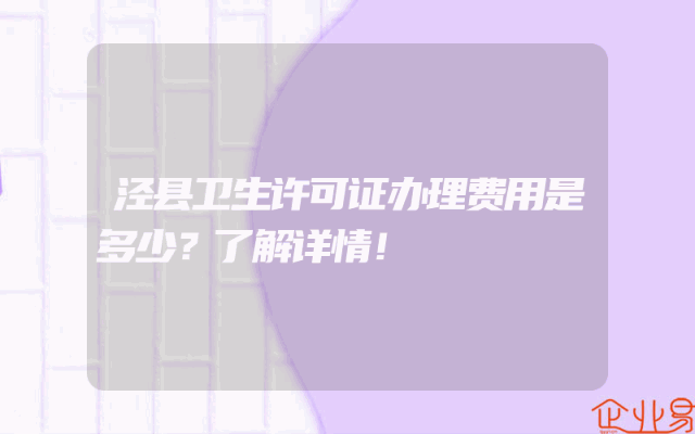 - 泾县卫生许可证办理费用是多少?了解详情!