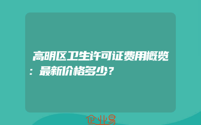 - 高明区卫生许可证费用概览:最新价格多少?一、引言近年来,随着营商环境的持续优化和市场竞争的日益激烈,企业对于合法合规经营的要求也日益提高。卫生许可证作为企业合法经营的重要资质之一,其办理流程及费用一直是众多企业和商户关注的焦点。本文将针对高