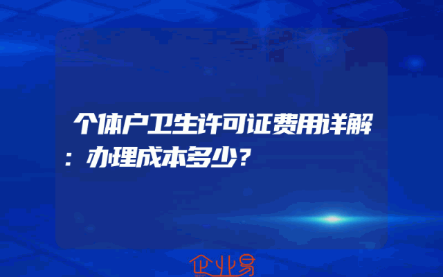 - 个体户卫生许可证费用详解:办理成本多少?一、前言对于个体户而言,卫生许可证是开展食品、餐饮等行业的必备证件。办理卫生许可证需要支付一定的费用,这些费用包括申请费、审查费、培训费等。本文将详细解析个体户卫生许可证的办理成本,帮助申请者更好地了