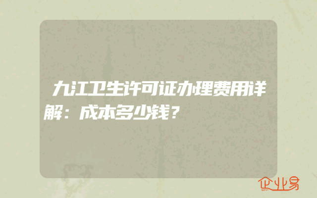 - 九江卫生许可证办理费用详解:成本多少钱?