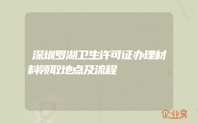 - 深圳罗湖卫生许可证办理材料领取地点及流程