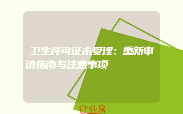 - 卫生许可证未受理:重新申请指南与注意事项