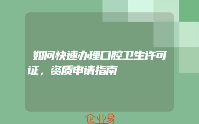 - 如何快速办理口腔卫生许可证,资质申请指南