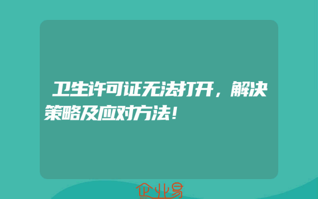 - 卫生许可证无法打开,解决策略及应对方法!