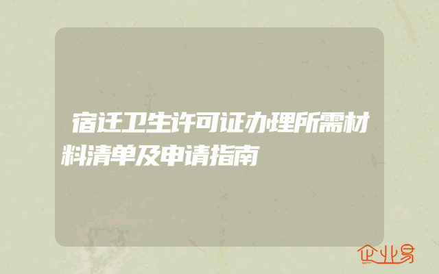 - 宿迁卫生许可证办理所需材料清单及申请指南