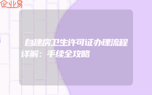 - 自建房卫生许可证办理流程详解:手续全攻略