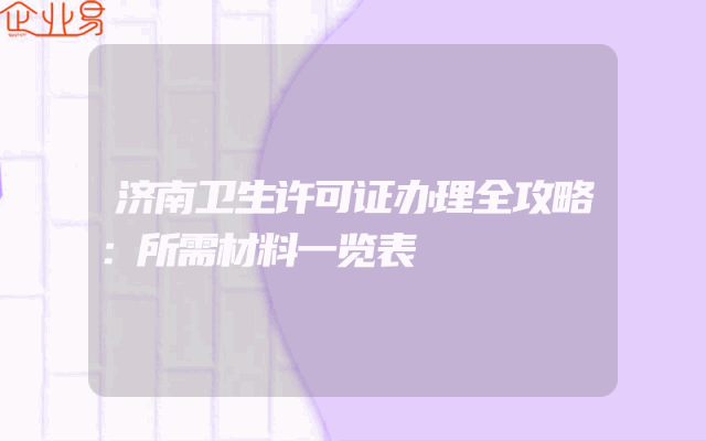 - 济南卫生许可证办理全攻略:所需材料一览表