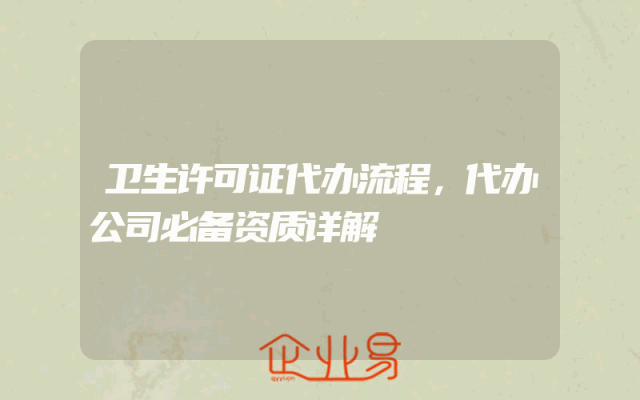 - 卫生许可证代办流程,代办公司必备资质详解