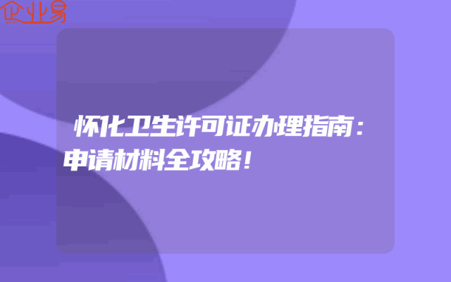 - 怀化卫生许可证办理指南:申请材料全攻略!