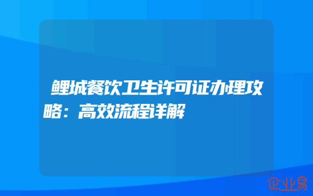 - 鲤城餐饮卫生许可证办理攻略:高效流程详解