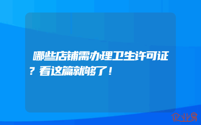 - 哪些店铺需办理卫生许可证?看这篇就够了!