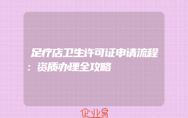 - 足疗店卫生许可证申请流程:资质办理全攻略