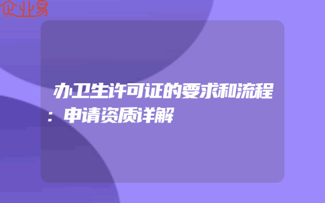 - 黑龙江卫生许可证申请流程及所需资质概述