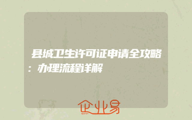 - 县城卫生许可证申请全攻略:办理流程详解了解卫生许可证的重要性在县城开展任何涉及公共卫生、食品、环境等领域的业务,卫生许可证是不可或缺的重要资质。它不仅是对企业合法经营的证明,更是保障公众健康安全的法律要求。对于申请者来说,明确卫生许