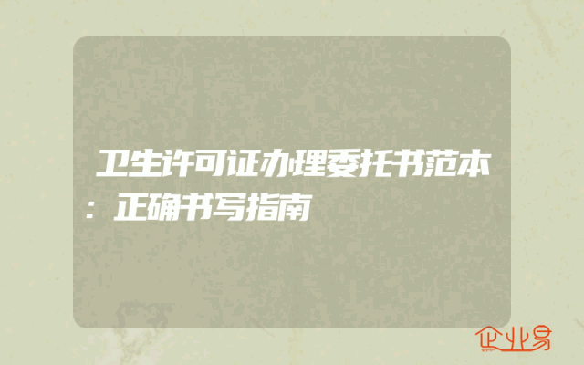 - 卫生许可证办理委托书范本:正确书写指南一、引言在企业的日常运营过程中,卫生许可证是确保企业合法经营的重要资质之一。当企业需要委托他人代为办理卫生许可证时,一份规范、明确的委托书显得尤为重要。本文将为您详细介绍卫生许可证办理委托书的正确书写指