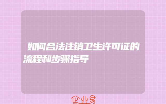 - 如何合法注销卫生许可证的流程与步骤指导一、了解注销卫生许可证的相关政策在开始注销卫生许可证的流程之前,首先需要详细了解相关的政策和规定。可以通过访问当地卫生监督部门的官方网站,或者咨询当地的卫生监管部门,获取最新的注销政策和流程。二、准备相
