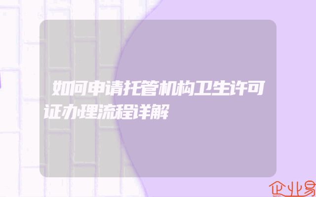 - 如何申请托管机构卫生许可证办理流程详解一、了解卫生许可证相关政策和要求在开始申请托管机构卫生许可证之前,首先需要了解相关的政策和要求。这包括但不限于当地卫生部门的法规、标准以及申请流程。可以通过访问政府官方网站、咨询相关部门或寻找专业服务机