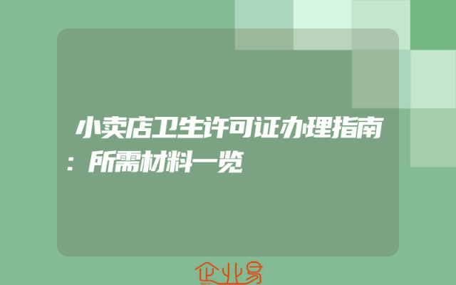 - 小卖店卫生许可证办理指南:所需材料一览一、前言随着经济的发展和城市化进程的加快,小卖店作为日常生活中不可或缺的一部分,其卫生状况直接关系到消费者的健康和公共安全。因此,办理小卖店卫生许可证是开店前的重要准备工作之一。本文将详细介绍办理小卖店