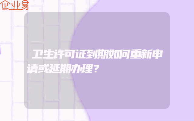 - 卫生许可证到期如何重新申请或延期办理了解卫生许可证到期的重要性卫生许可证是企业合法经营的必备证件之一,其有效期届满时,企业必须按照相关规定及时重新申请或延期办理。这不仅关乎企业的正常运营,更涉及到消费者的健康安全。因此,企业必须高度重视,确