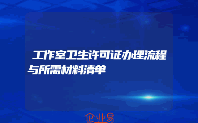 - 工作室卫生许可证办理流程与所需材料清单一、前言在如今日新月异的创业浪潮中,许多热爱创新和创意的人们选择开设自己的工作室。作为专业的企业服务行业从业者,深知工作室卫生许可证的重要性及其办理流程。本文将详细介绍工作室卫生许可证的办理流程以及所需