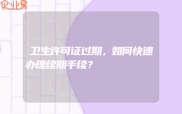 - 卫生许可证过期,如何快速办理续期手续?了解过期情况与续期要求当发现卫生许可证即将过期或已过期时,首先需要明确许可证的过期程度以及当地的续期要求。不同地区对于卫生许可证的续期流程、所需材料和时效可能都有所不同,因此第一步应当是查阅相关法规或通