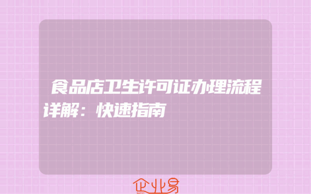 - 食品店卫生许可证办理流程详解:快速指南了解卫生许可证的重要性对于任何一家食品店,卫生许可证都是合法经营的必备证件。它不仅是对店铺卫生条件达标的一种认证,更是保障消费者健康的重要证明。随着食品安全问题的