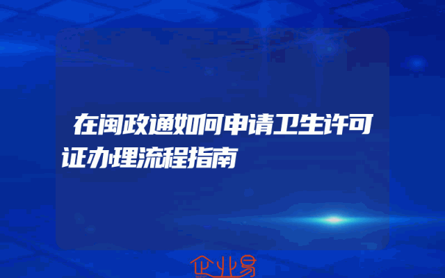 - 在闽政通如何申请卫生许可证办理流程指南一、闽政通平台简介闽政通是福建省政府推出的政务服务移动应用平台,旨在为企业提供便捷、高效的政务服务。其中,卫生许可证的办理也可以通过该平台完成,大大简化了办事流程,提高了办事效率。二、注册与登录首先,企
