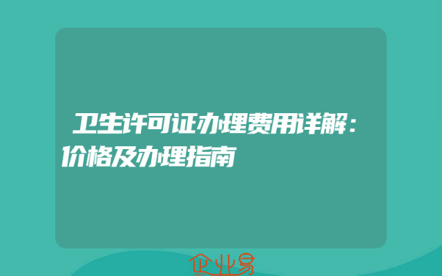 - 卫生许可证办理费用详解:价格及办理指南一、卫生许可证办理的重要性卫生许可证是企业从事食品生产、餐饮服务等行业的必备资质。它不仅是对企业卫生条件的认证,也是保障消费者权益的重要手段。因此,了解卫生许可证的办理费用及流程,对于计划开展相关业务的