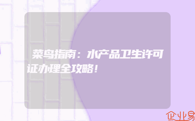- 菜鸟指南:水产品卫生许可证办理全攻略!