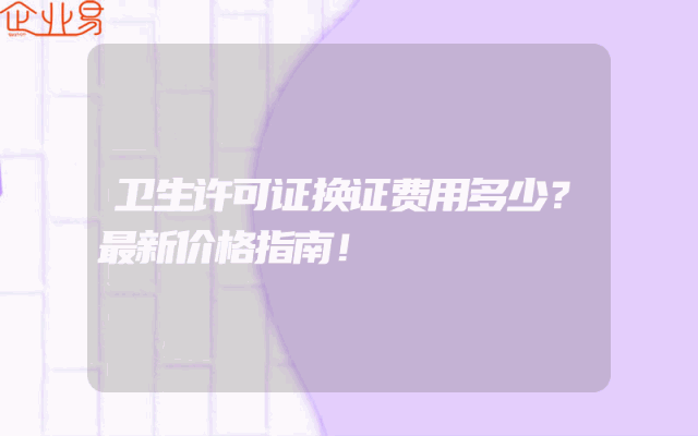 - 卫生许可证换证费用多少?最新价格指南!