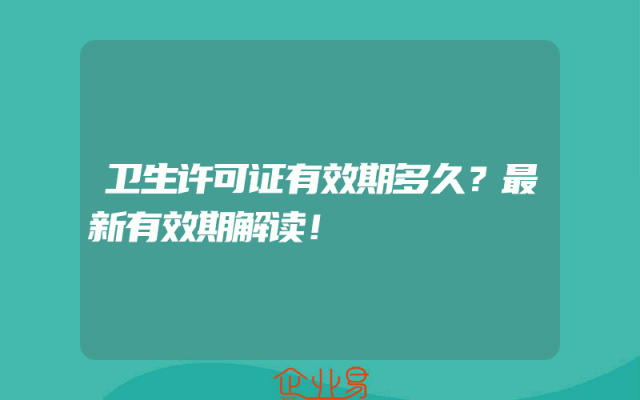 - 卫生许可证有效期多久?最新有效期解读!