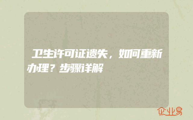- 卫生许可证遗失,如何重新办理?步骤详解