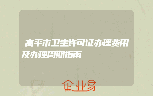 - 高平市卫生许可证办理费用及办理周期指南