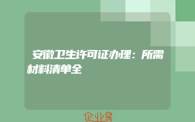 - 安徽卫生许可证办理:所需材料清单全