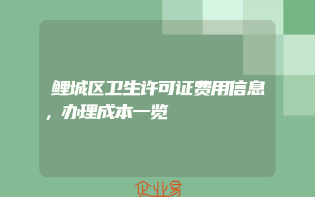 - 鲤城区卫生许可证费用信息,办理成本一览