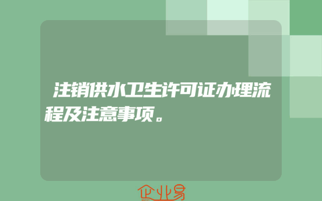 - 注销供水卫生许可证办理流程及注意事项。
