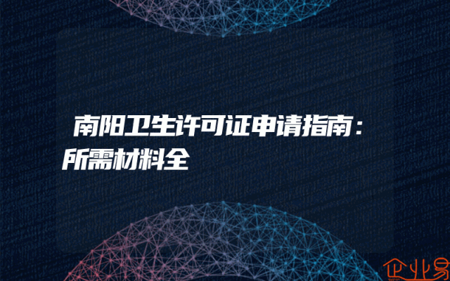 - 南阳卫生许可证申请指南:所需材料全