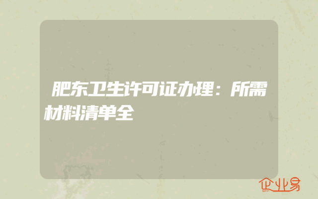 - 肥东卫生许可证办理:所需材料清单全
